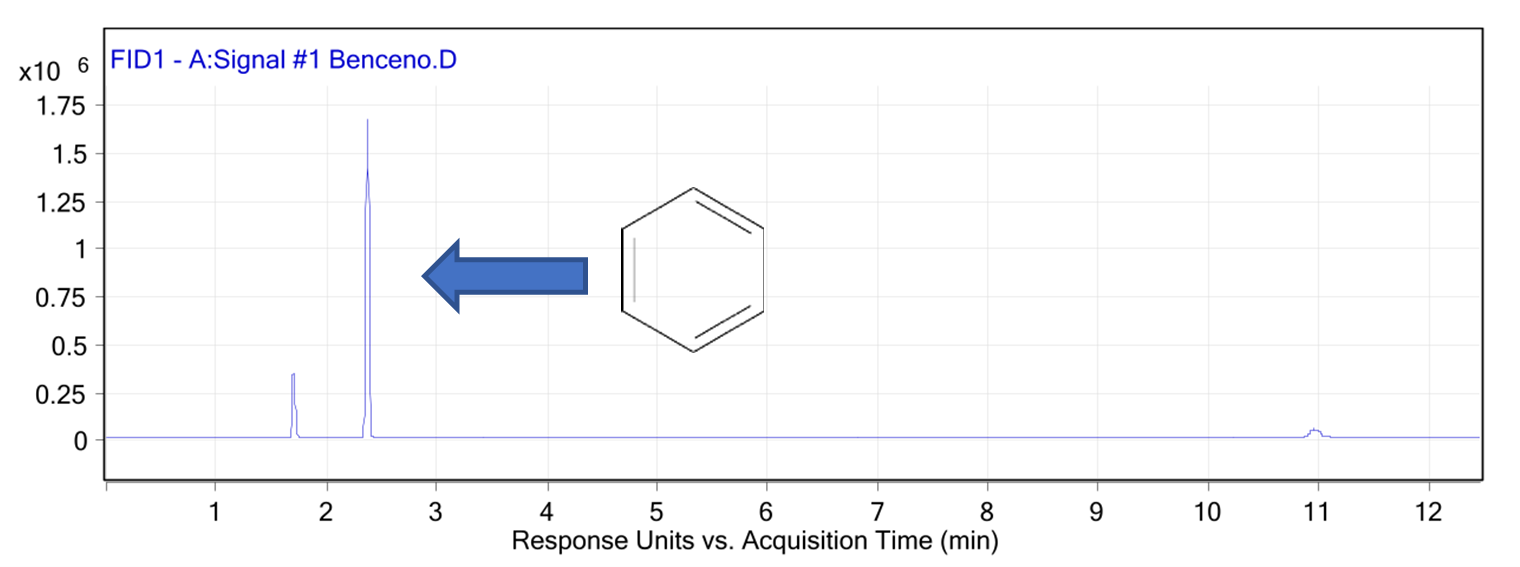 Las muestras se analizan por cromatografía en fase gaseosa con detector de ionización de llama (FID)(5).