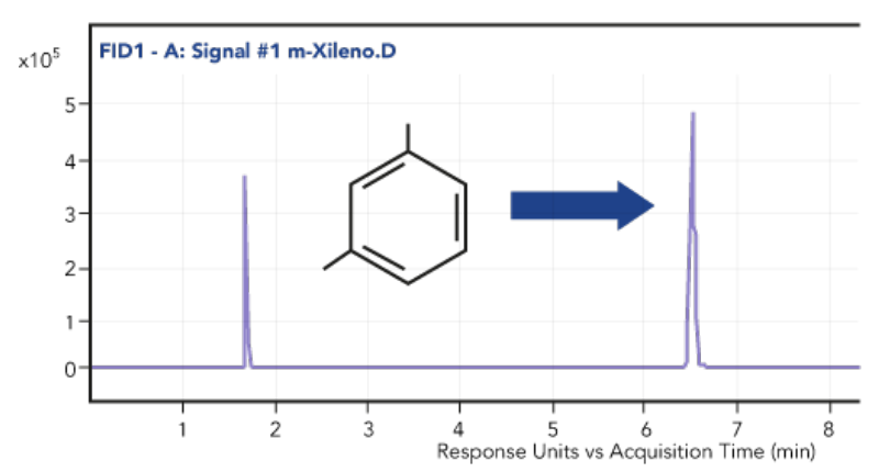 - Si en los viales (B) se obtienen cantidades de xileno ≥ 5% de las cantidades obtenidas en su correspondiente vial (A), la toma de muestra no es válida y debe repetirse el muestreo.