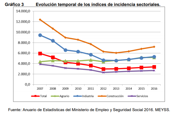 Todo ello provoca que el sector agroganadero sea uno de los sectores con una siniestralidad más elevada cuyos accidentes suelen ser más graves que en el resto de sectores, como se indica en la tabla siguiente, extraída del documento elaborado por el INSST en 2016 Diagnostico de situación del sector agrario.
