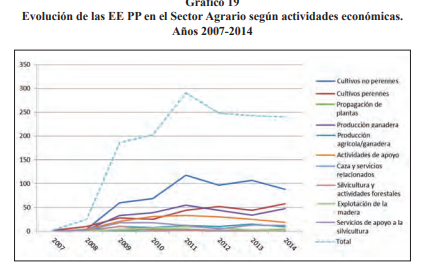 En cuanto a la evolución en el tiempo, desde 2007, año de inicio de las comunicaciones a CEPROSS, se puede observar una tendencia al alza, debida a las actividades de cultivos perennes y no perennes y producción ganadera especialmente, que se estabiliza al final de la serie debido a la disminución de notificaciones en cultivos perennes.