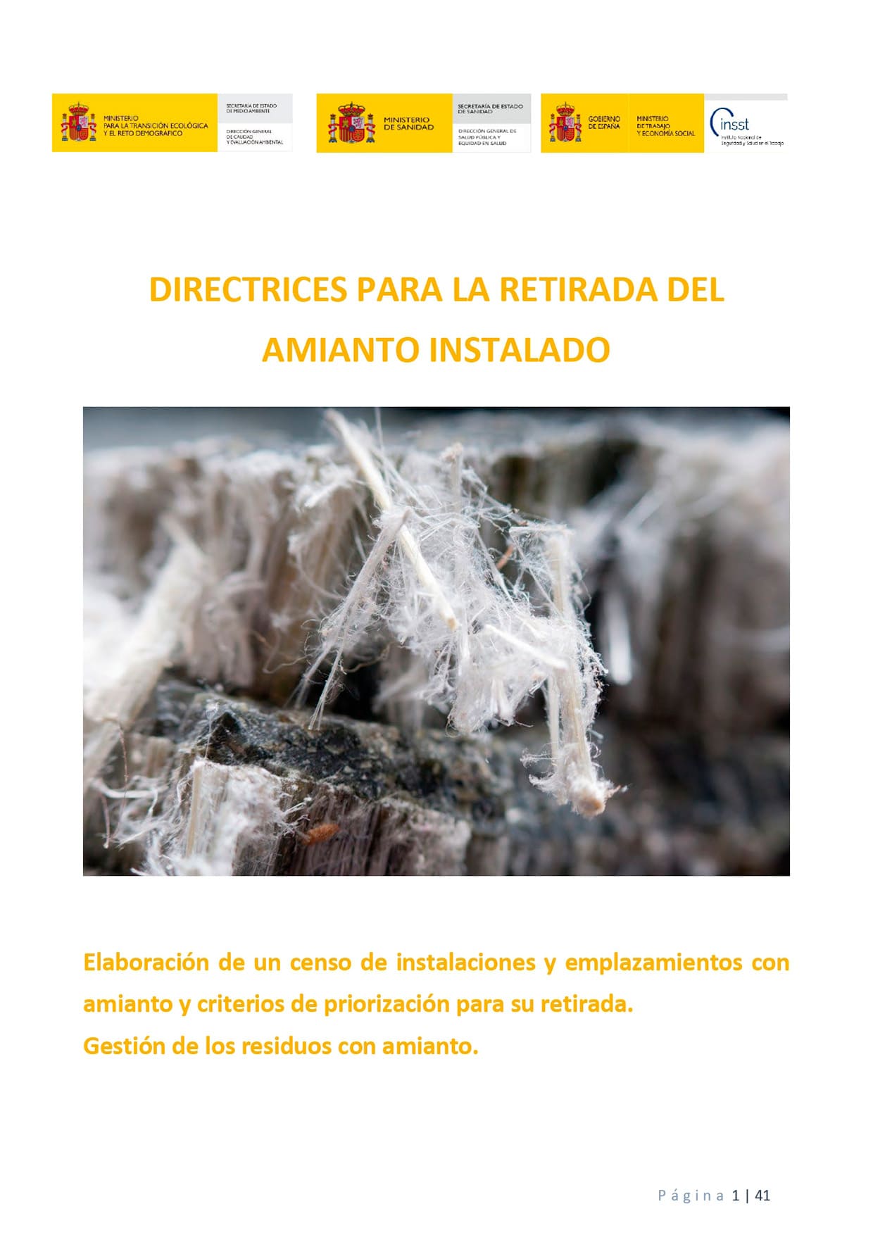 Directrices para la retirada del amianto instalado - Año 2024