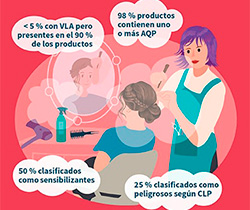 La evaluación de la exposición a agentes químicos en peluquerías se dificulta principalmente por dos motivos: existencia de una gran cantidad de compuestos involucrados y dificultades para realizar mediciones representativas y fiables, ya sea debido a la inexistencia de valores límite ambientales con los que comparar o por no disponer de métodos de toma de muestra y análisis validados.