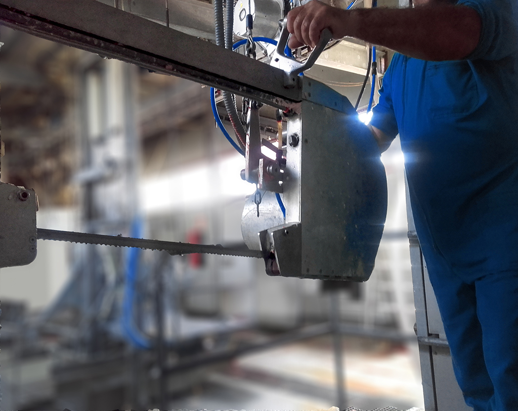 023. Sierra de cinta para esquinado de ganado. Corte en canal, contacto con sierra