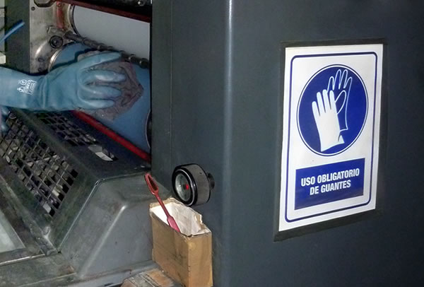 Carga de trabajo y duración de la tarea: Depende de cada proceso productivo (nº de pedidos, complejidad de impresión, cantidad de tinta seca, cantidad de fibras e hilos de papel, etc.), lo cual influye en el tiempo de exposición