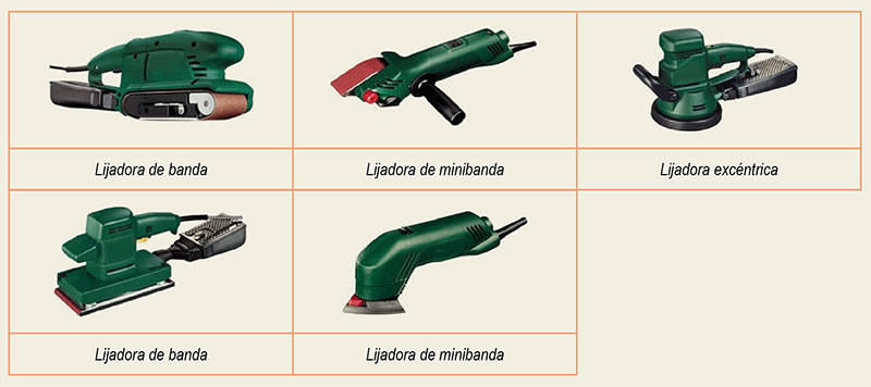 - Lijado con máquina. Se puede realizar mediante el uso de: