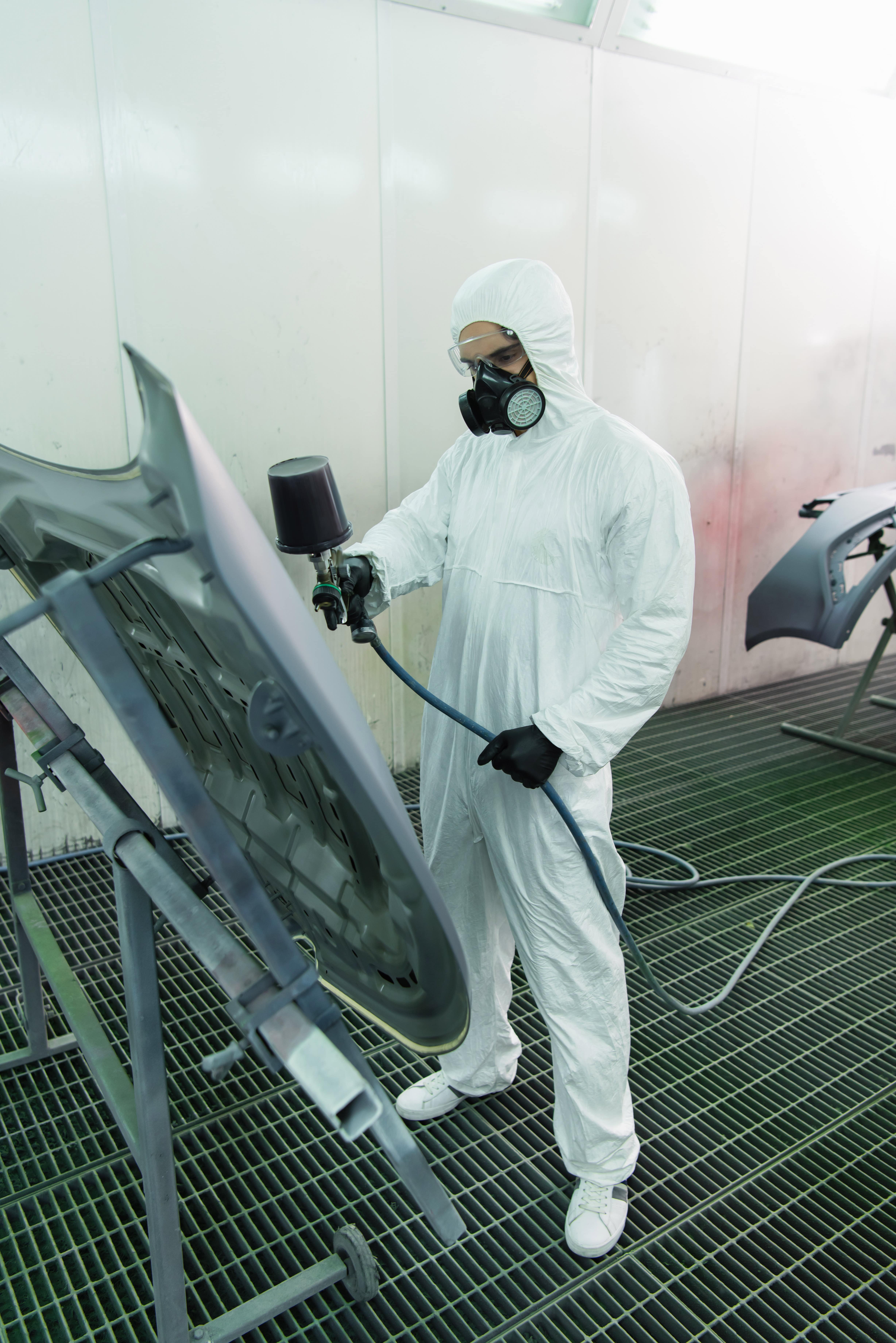 Las cabinas de pintura no protegen suficientemente al pintor de la exposición a productos químicos y vapores peligrosos durante la pulverización. Por ello, teniendo en cuenta las FDS y de acuerdo con la evaluación de riesgos, será necesario usar los equipos de protección individual adecuados.