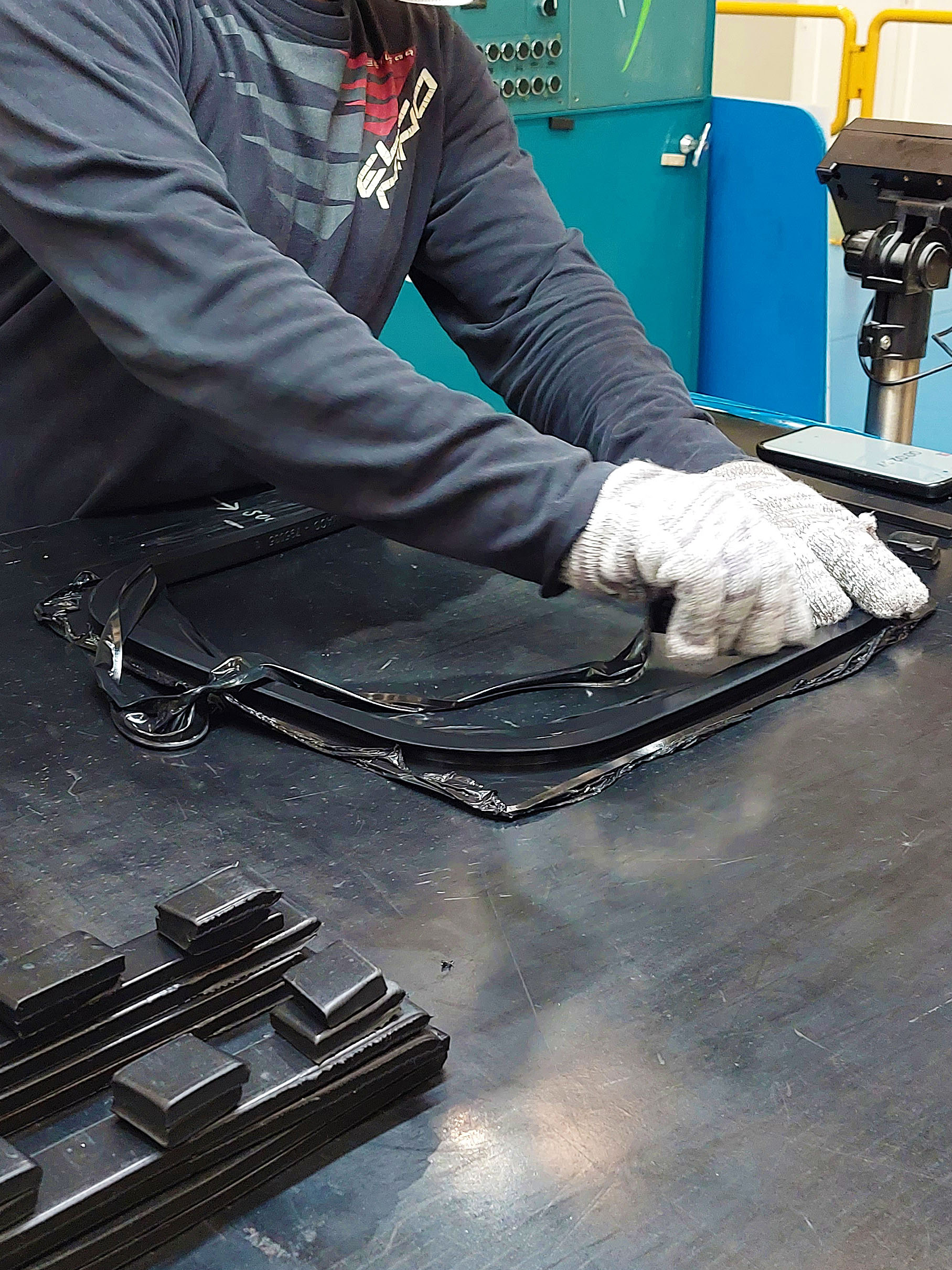- Ausencia o ineficacia de los sistemas de extracción localizada para captar los humos de caucho en la boca de salida de las piezas calientes y en la mesa de trabajo para el recorte de piezas.