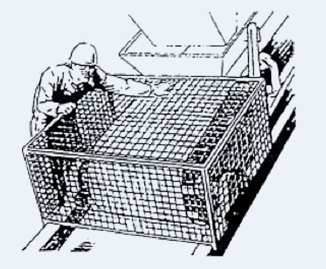 - El tambor de cola de la cinta transportadora, como zona con riesgo mecánico de atrapamiento, debe estar adecuadamente protegido. Un ejemplo puede ser una carcasa de malla metálica que cubra toda la zona (Ver figura 3, "Carcasa de malla metálica") y dotada de un enclavamiento que actúe al abrirla, deteniendo el equipo de trabajo.