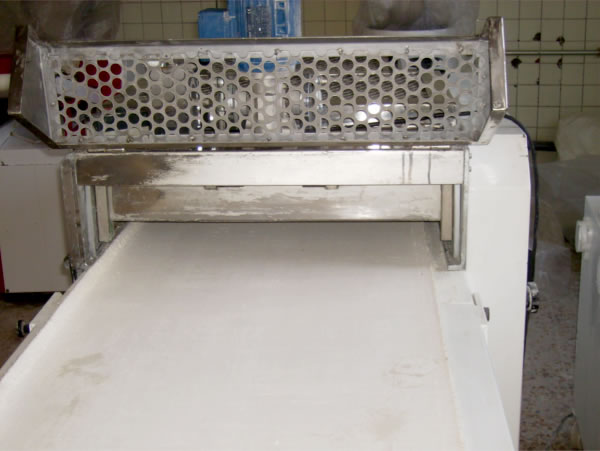 012. Cuando el trabajador atendía a una máquina chapatera quiso retirar con la mano unos restos de masa de la banda de alimentación de la máquina y la cuchilla le atrapó varios dedos de la mano derecha con resultado de amputación de de los mismos