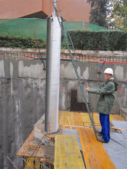 - El encofrado con el que se realizó el hormigonado del pilar era del tipo “monouso de cartón”-mediante tubos de cartón- que no se retira hasta el final de la actividad pues el propio encofrado protege al pilar frente a golpes y manchas por lo que la tarea que decidió hacer el trabajador no era necesaria en ese momento.