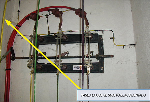 Se encontraron con el inconveniente de que no tenían la llave para abrir la puerta y así poder acceder al interior. Utilizando una escalera portátil el accidentado se encaramó sobre la verja y se dispuso a pasar al interior de la celda, apoyando los pies sobre la estructura del interruptor automático de 13kv. a la vez que con una mano se sujetaba a una de las fases o líneas conductoras. Según su relato instantes después recibió una descarga que le hizo caer al suelo de la celda.