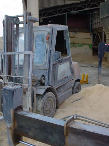- La carretilla elevadora presentaba deficiencias de seguridad: cinturón de seguridad estropeado, retrovisor inutilizado por el polvo y suciedad acumulada y el avisador acústico-luminoso no estaba operativo.