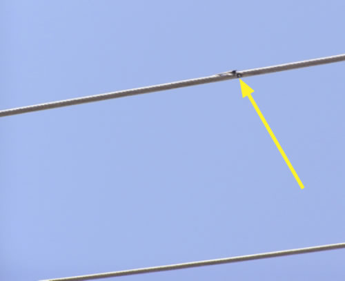 Ver figura 1 "Punto de contacto de la línea con la barandilla" y figura 2. "Punto de contacto en el cable".