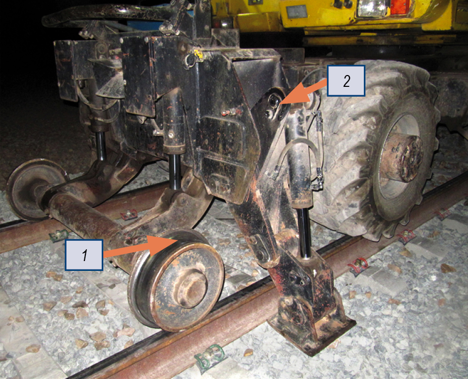 068. Accidente por atrapamiento del pie del trabajador con el estabilizador hidráulico de una retroexcavadora de vía, mientras se realizaban trabajos de levante y retirada de parejas para la sustitución de una vía férrea