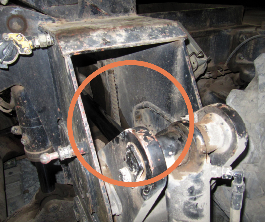 - Desde la cabina del equipo, el personal situado en la zona delantera izquierda del equipo resulta perfectamente visible. Al parecer, el operador del equipo no se percató de la acción realizada por el accidentado, porque justo en ese momento estaba pendiente del movimiento de repliegue del estabilizador delantero contrario.