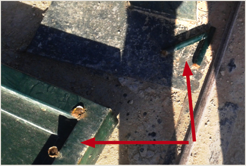 - Falta de previsión de la empresa, al instalar una puerta motorizada en una zona sin suministro eléctrico y no llegar a ejecutar la instalación necesaria para ponerla en servicio, dejando pasar un periodo prolongado de tiempo (2 años). Los elementos para el motorizado aumentaban el peso de la hoja de la puerta, lo cual pudo tener influencia y acelerar el deterioro del tope metálico, al ser mayor la fuerza de impacto de dicho tope contra el pilar.