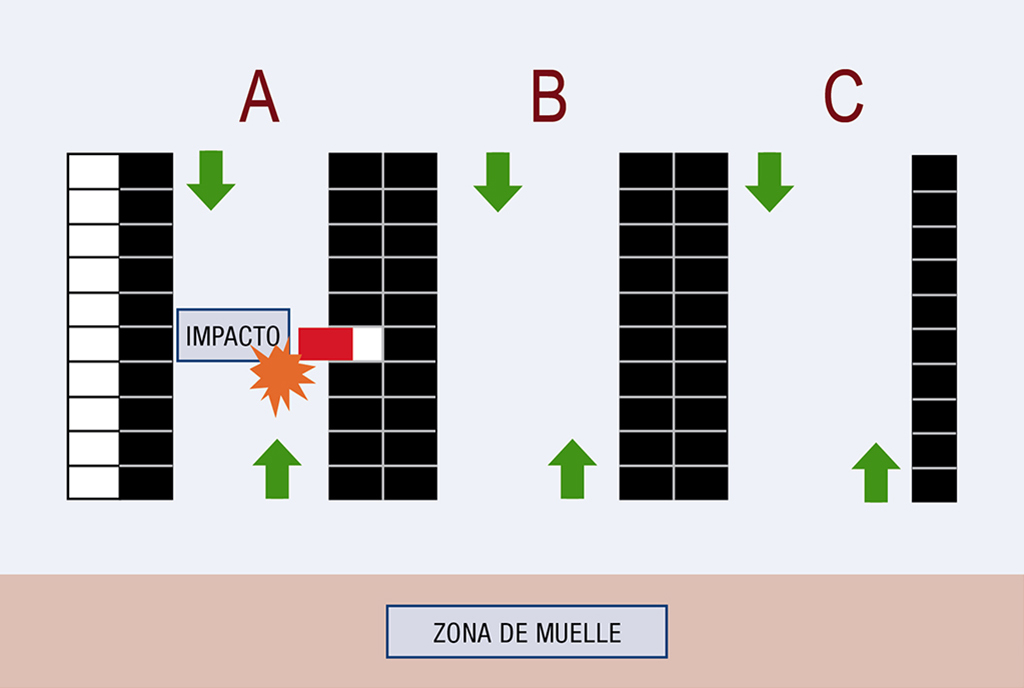 - La realización simultánea de ambos tipos de tareas implica que el tráfico de transpaletas en circulación y de trabajadores a pie, realizando preparación de pedidos, sea relevante en un espacio delimitado.