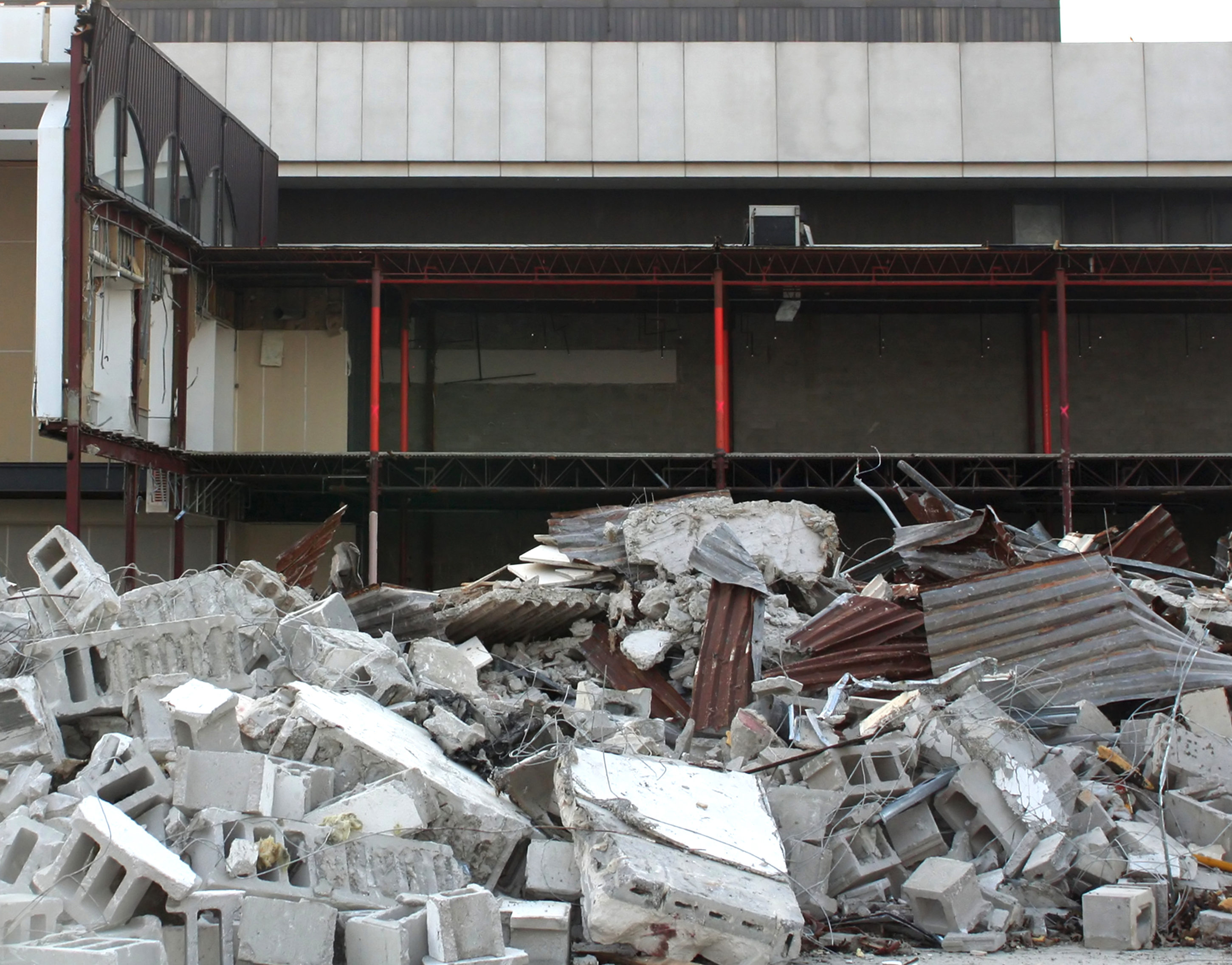 Durante las obras de demolición de un pabellón (antiguo polideportivo) en un colegio situado en las afueras de una gran ciudad, se produjo la caída de la bóveda de hormigón arrastrando los pórticos y pilares sobre los que se sustentaba.