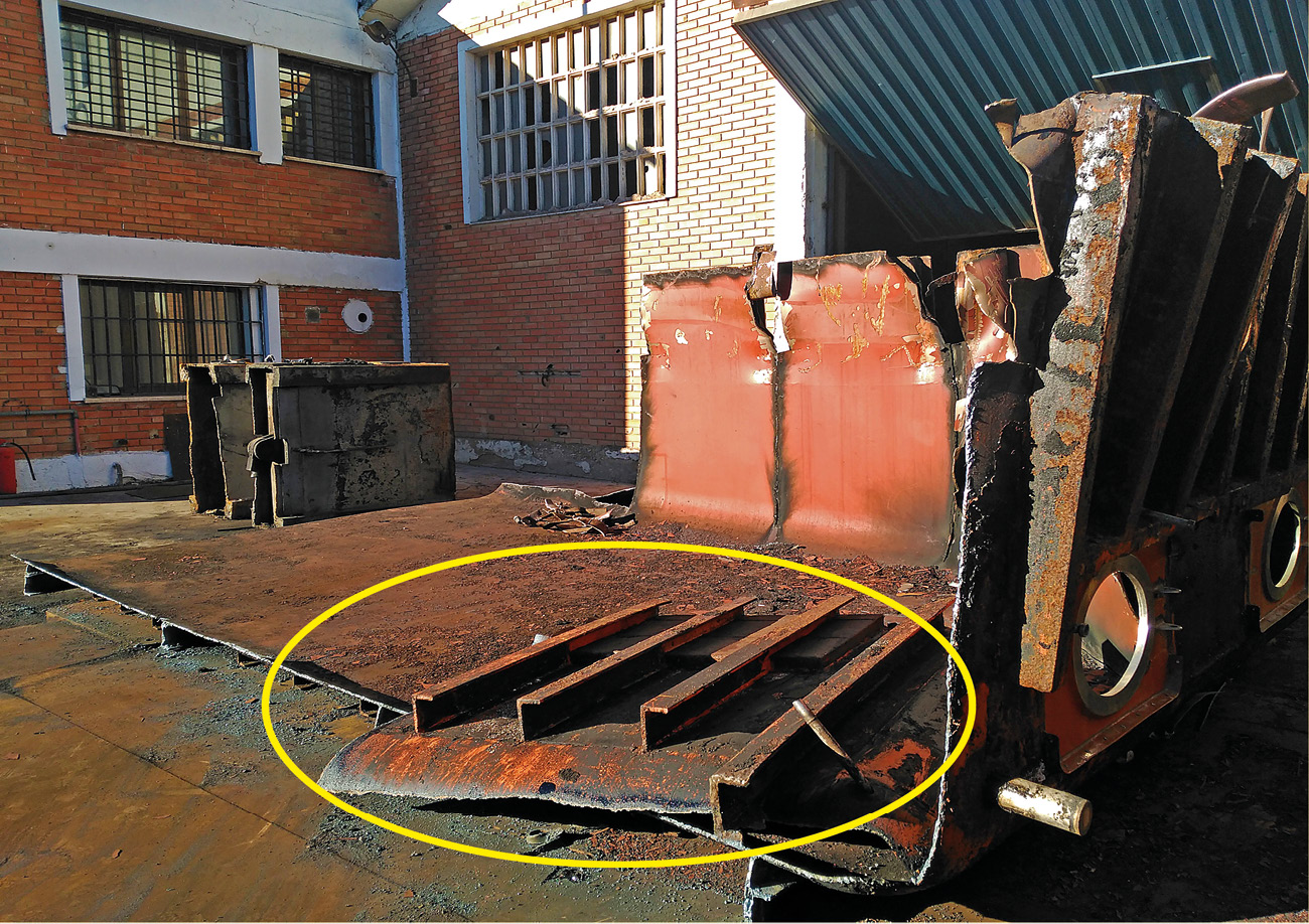 Para proceder a la separación de la pieza, el trabajador realizó dos cortes verticales y un corte longitudinal en la base del depósito, separando completamente la pieza del resto de la estructura, momento en el que la misma cayó hacia el interior del depósito, golpeando al trabajador.