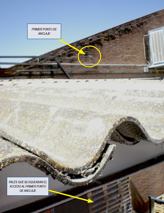 - Las líneas de vida instaladas en la cubierta eran inoperantes por dos razones: