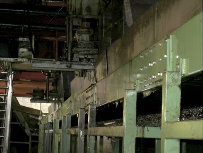 Cuando se para esta cinta transportadora se produce una señal acústica y luminosa en el piso superior donde se encuentran las prensas. Cuando sucede esto se baja al foso para volver a ponerla en marcha ya que, en algunos casos, la cinta se para por pequeños atascos o esfuerzos que hacen saltar el diferencial del cuadro de puesta en marcha.