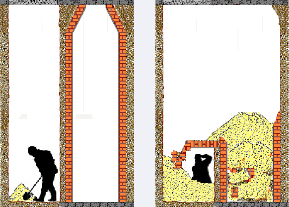 Ver figura 5. "Diferentes estadios de la excavación donde se ha representando el incremento de la columna de material que se situaba entre los dos pozos, a medida que se desarrollaba la excavación".